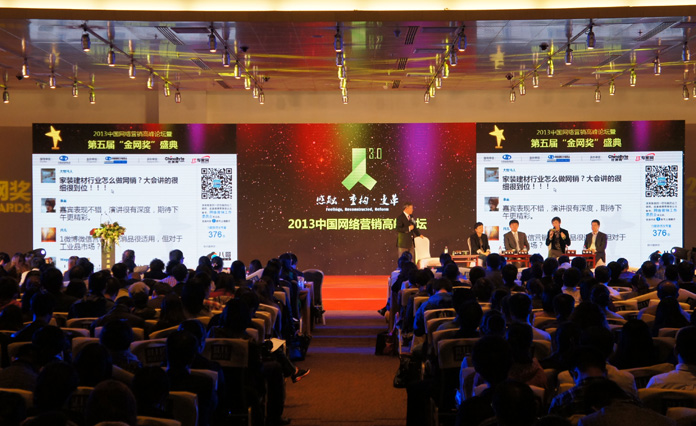 北京时间2013年10月15日-16日,由中国互联网协会网络营销工作委员会举办的2013中国网络营销高峰论坛及第五届金网奖盛典在北京国家会议中心三层成功举办。大会围绕“感触、重构、变革”为主题,集合营销业界的诸多精英观点,并且就业内优秀案例与企业进行表彰。八哥微信墙作为场景互动合作伙伴,全程提供现场微信互动技术支持,参与互动人数439人,发布信息量2038条,与会人群参与积极踊跃,互动率超过70%。