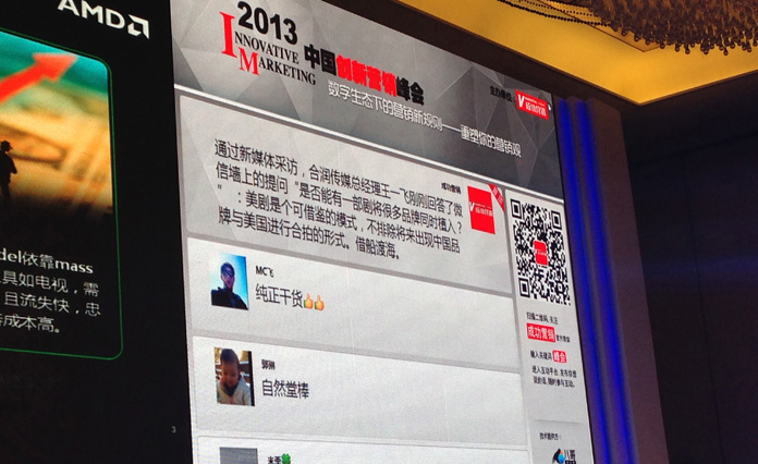北京时间2013年11月20日, “2013中国创新峰会”在北京JW万豪酒店成功举办。本届峰会围绕“数字生态下的营销新规划---重塑你的营销观”为主题,集合营销业界的诸多精英观点,就业内优秀案例与企业进行表彰。作为场景互动合作伙伴,八哥微信墙全程提供微信场景互动技术支持:微信信息上墙、官方发声、游戏活动抽奖等等,大幅度提升会场互动效果与亮点呈现。